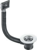 "1½” Sink Combined Waste and Overflow: Stainless Steel Flange: Rectangular Overflow, no Overflow Grid: Black PVC Plug with Chrome Plated Chain and Stay